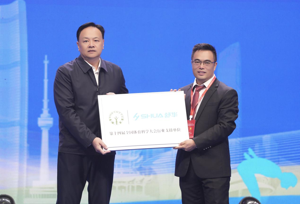 李颖川理事长、曹景伟秘书长、周鹏程副校长、谢敏豪副理事长、吕万刚校长,为李宁(中国)体育用品有限公司、大塚制药株式会社、舒华体育股份有限公司及26家大会企业合作伙伴授牌和颁发证书,感谢他们对本次体育科学大会的大力支持。